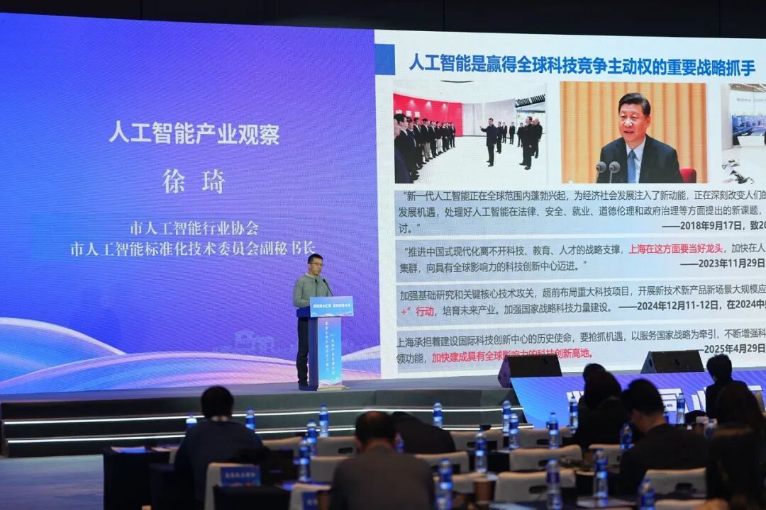 中欧国际工商学院管理学副教授杨蔚作《AI重塑未来:人工智能带来的组织变革与竞争新格局》主旨演讲;市人工智能行业协会、市人工智能标准化技术委员会副秘书长徐琦作《人工智能产业观察》主旨演讲。