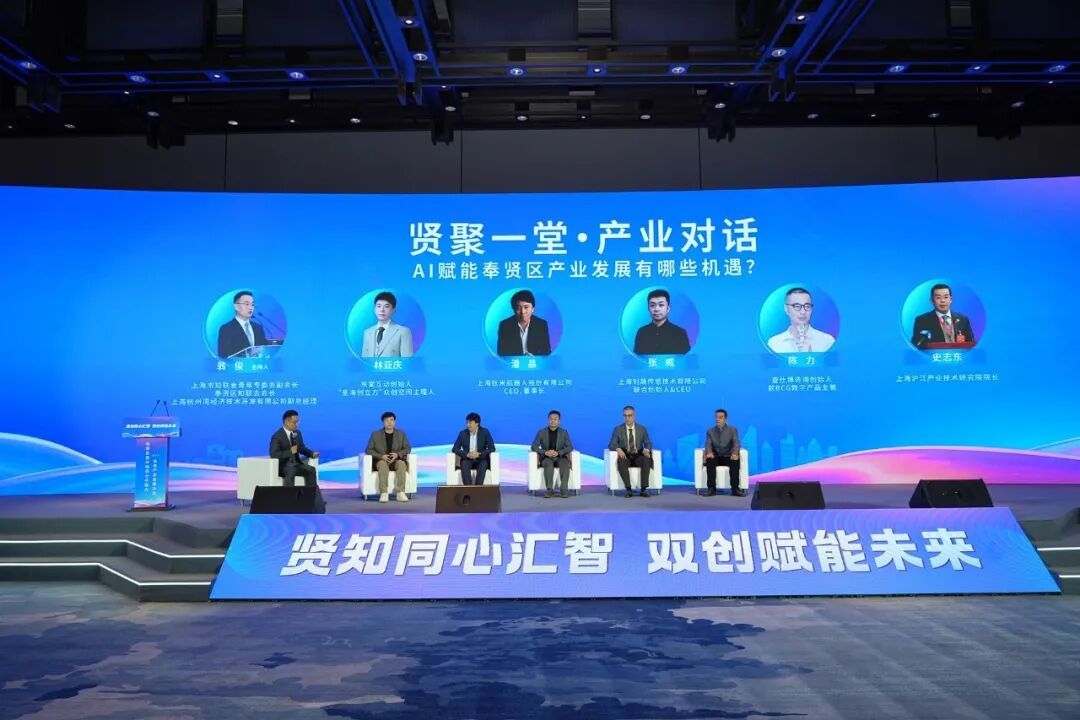 钛米机器人创始人、董事长兼CEO潘晶,钊晟传感技术联合创始人、CEO张威,查仕博咨询创始合伙人、首席AI产品顾问陈力,东棠网络科技总经理林亚庆,沪江产业技术研究院院长史志东五位企业家与专家,共同围绕“人工智能赋能奉贤区产业发展机遇”主题展开研讨。对话由奉贤区知联会会长翁俊主持。