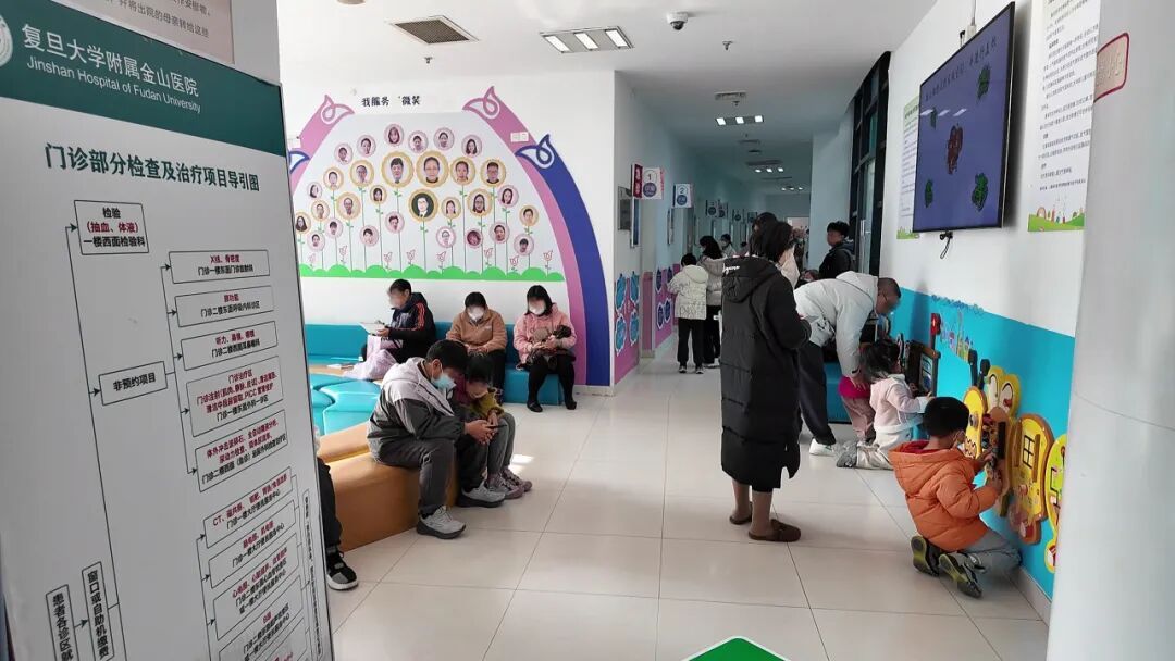 在金山医院儿科诊区,记者看到不少家长带着孩子在等候就诊。市民沈女士表示,自己孩子所在班级有很多人最近都出现发热症状,请假人数也比较多。