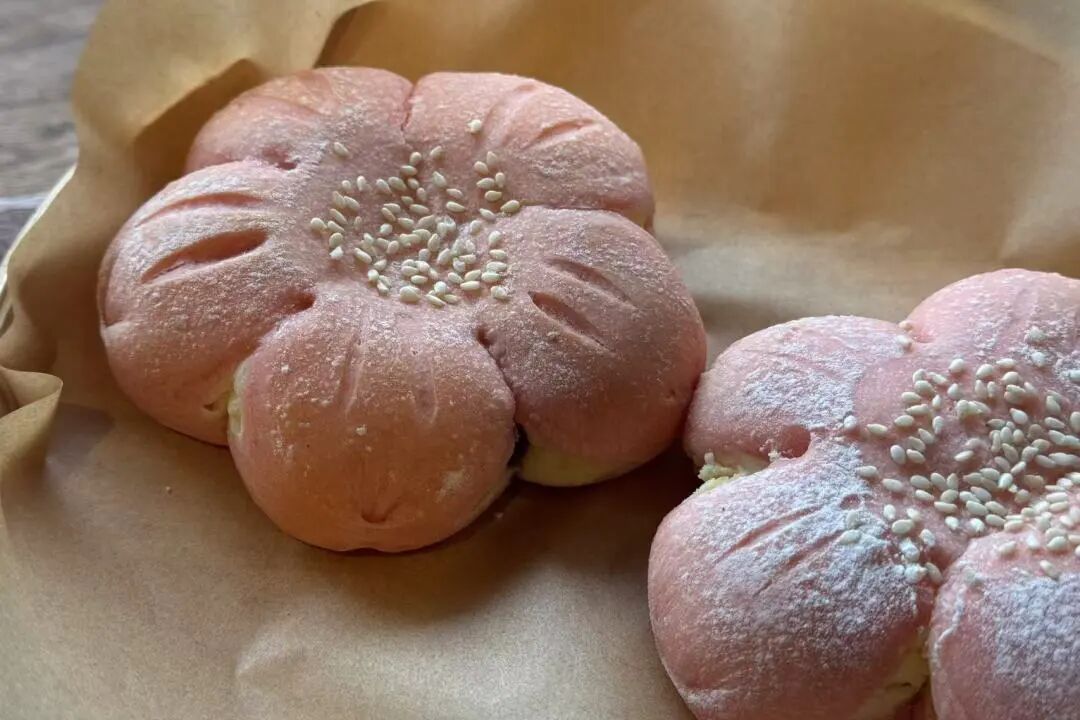 这种联结不止于食材,还在于对乡村元素的创意诠释。春天,天马星空村成片的桃花海给了董元野灵感,她用仙人掌果粉和火龙果汁,研发出形似五瓣桃花的“桃花包”。“本来只是桃花季的限定产品,没想到大家这么喜欢,现在成了我们的常规热门款。”桃花包的成功让团队更加坚定了与在地物产结合的路线,目前她们正在开发与星空元素相关的产品。无独有偶,在横山村,黄海英望着横卧在村内的横云山,将山脉线条“刻”在了面包里,于是有了“玫荔横山”玫瑰荔枝欧包。