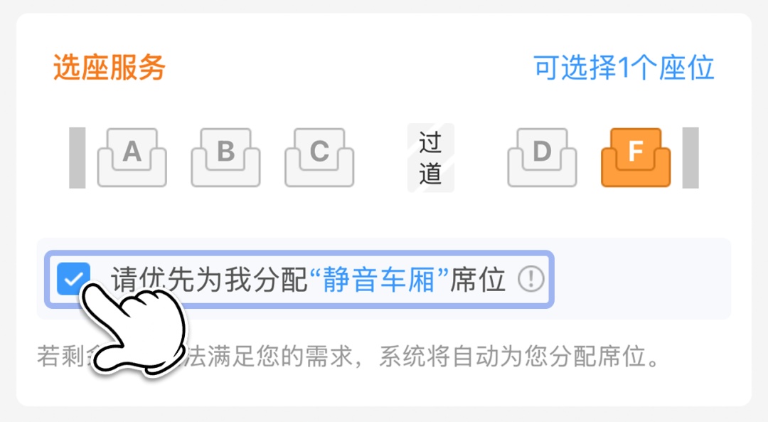 旅客在购买火车票时,可选择购买带有“静”字标签的车次,在确认订单页面勾选:请优先为我分配“静音车厢”席位。即可在静音车厢有余票的情况下,选乘静音车厢,享受更加安静的乘车环境,目前已有90多列动车组列车设有此类车厢。