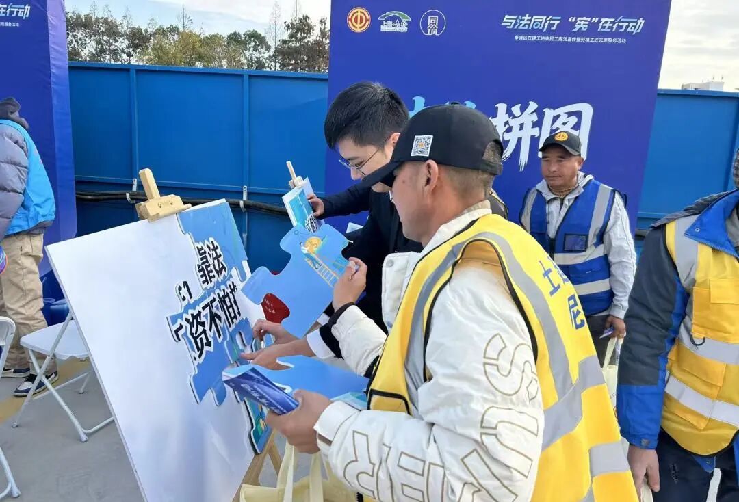 活动现场,大家通过挑战各类法治小游戏,在互动中加深对法律知识的理解。不仅让农民工朋友们在紧张的工作之余放松了身心,更让宪法知识在趣味互动中入脑入心。