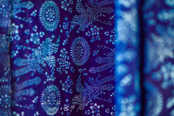 药斑布始于南宋,用镂空版白浆防染印花,以蓝草为染料印染而成。经过刻版、刮浆、浸染、去白多道印染工艺制成。