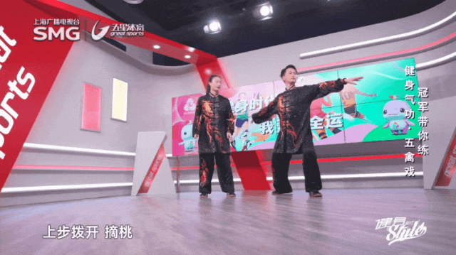 五禽戏需体现“仿生导引”这四个字,虎、鹿、熊、猿、鸟这五种动物,要去很好地领会它们的形态,包括动物的神态,乃至于动物的心理,应反复琢磨。再通过功法演练,“三调合一”。调身,指形体做动作;调息,就是呼吸配合;调心,即心理调节,以此达到“三调合一”的训练。这三点就是这个项目和其他项目本质上最不同的地方,做好这三点后,可以达到强身健体、延年益寿的效果。