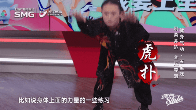 像老虎,它比较威猛,在练习时身体上的力量可以得到增长;鹿比较灵活,模仿小鹿的奔跑、转身、转头,可以作为身体柔软度的练习;像熊,通过熊的一些摇晃来对脏腑和脾胃进行按摩;模仿猿摘桃子、左顾右盼这种神态,对眼睛、身体的灵活度都有所帮助;最后是鸟,有一个比较特殊的动作——鸟飞,它要抬起一只脚,另一只脚站立,这就可以很好地锻炼平衡能力。