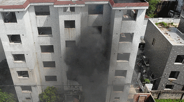 此前消防员曾在两栋待拆迁居民楼内