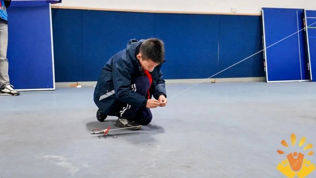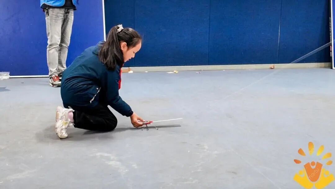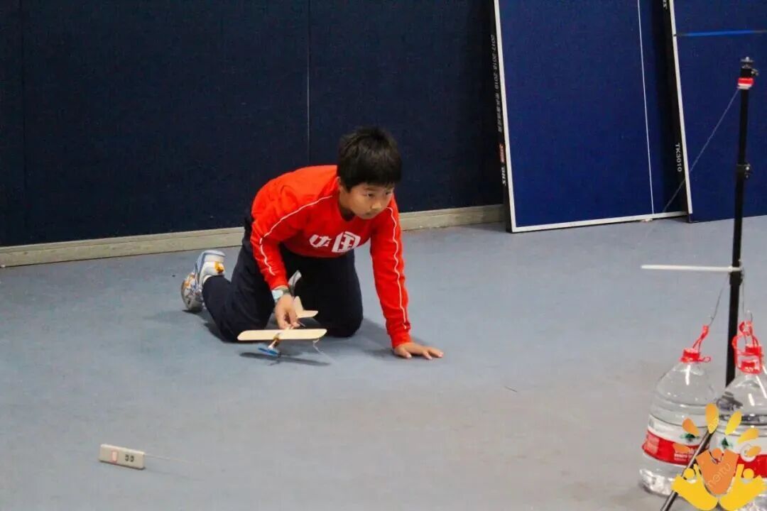 此项目从零部件加工、组装到橡筋绕制,选手需全程独立完成。通过调整模型平衡与橡筋张力,力求让直升机获得最长留空时间,每一秒的突破都凝聚着对动力原理的理解。