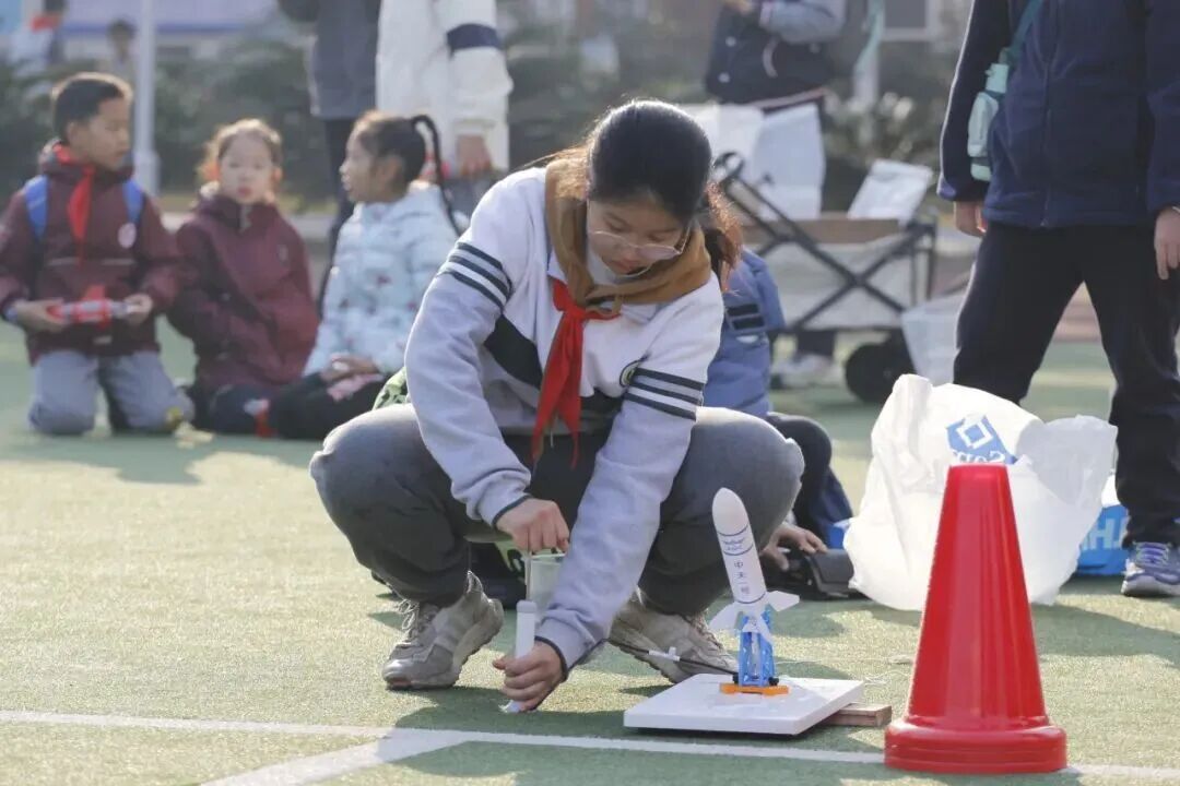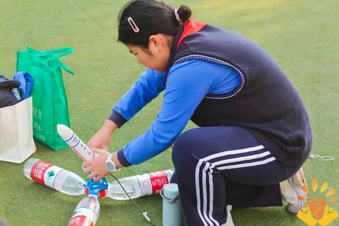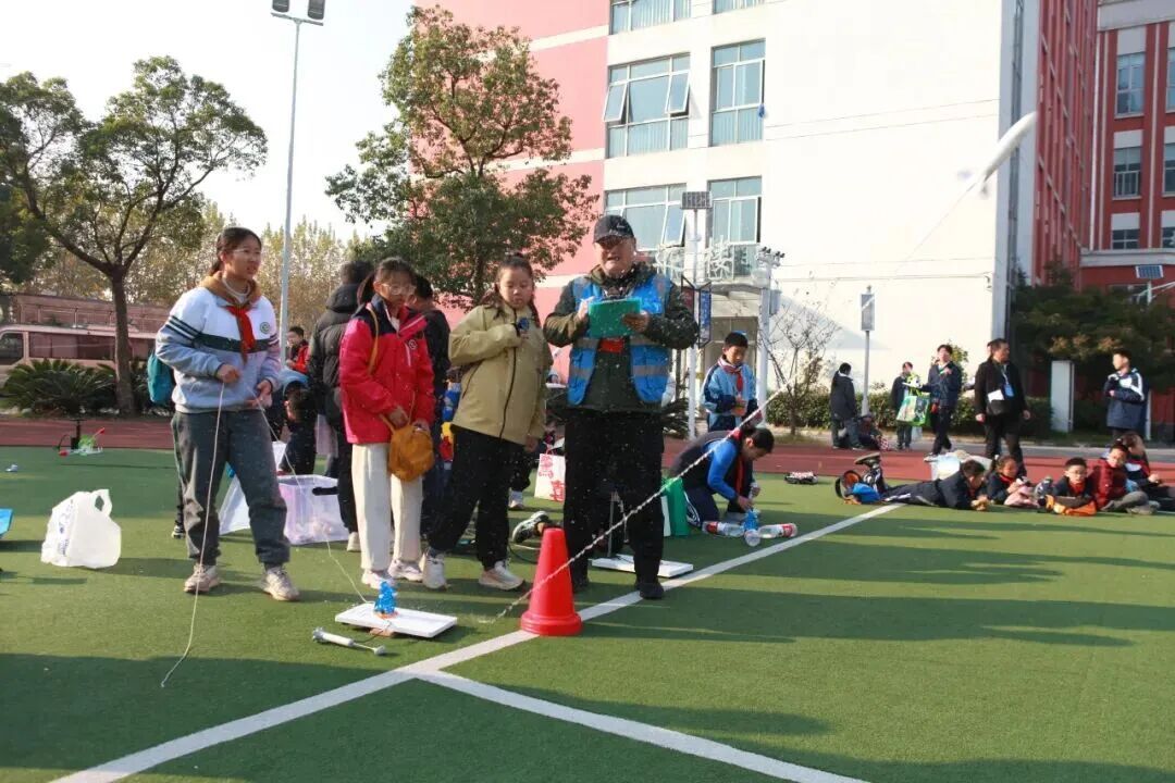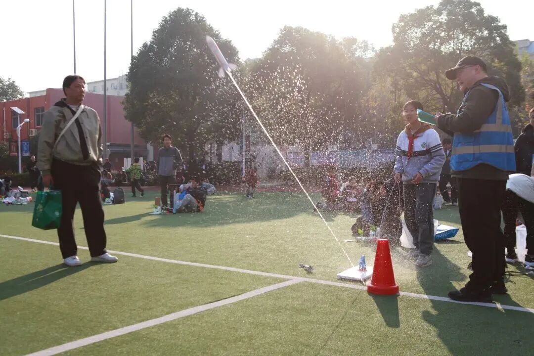 水火箭30米定点项目充满趣味与挑战性。选手利用饮料瓶制作模型火箭,通过向瓶内灌水、加压,借助气体推力实现发射,目标是命中30米处的标志靶。比赛以 “距离靶心最近者优先” 评定成绩,既需要掌握水火箭的压力控制、发射角度调整技巧,也考验对物理力学的实际应用能力,每一次精准命中都引来现场阵阵欢呼。