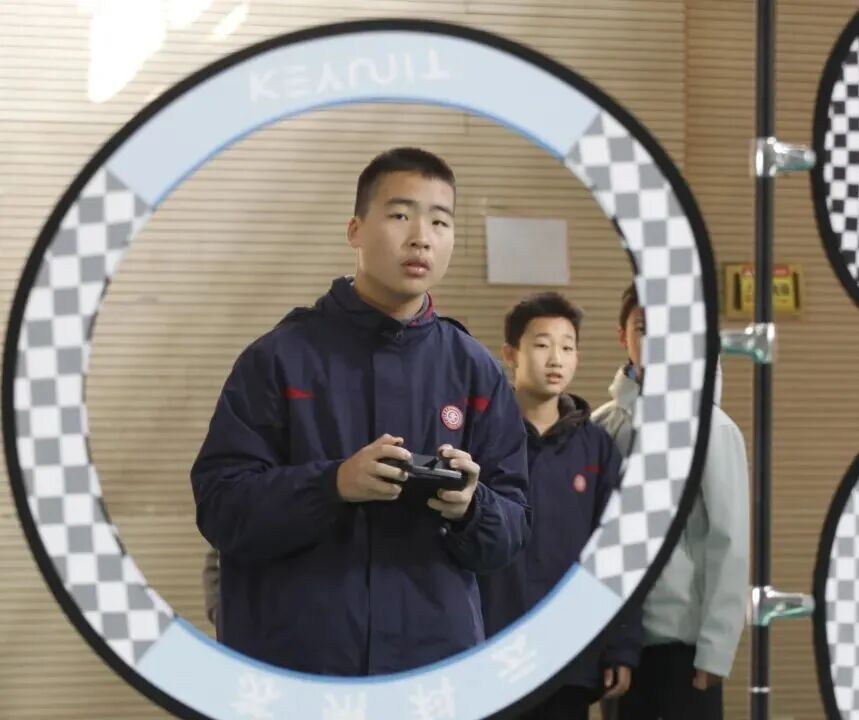 此项目中两人一组协作操控多轴飞行器,在规定时间内穿越障碍,小组配合与飞行速度同样重要,展现团队协作与快速反应能力。