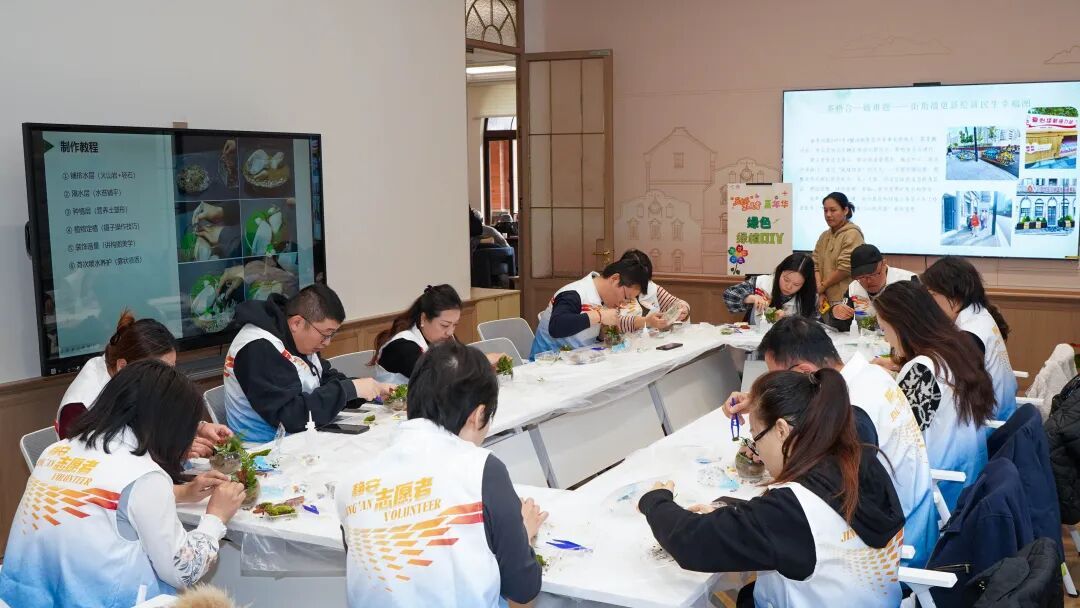 街道市民园艺中心的老师则带着环保志愿者们一起开展“绿色花”绿植DIY,亲手栽种小盆栽,传递环保理念,定格美好时光。
