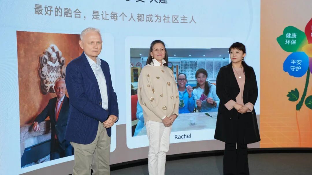 “hello,石二”街道多语种服务队成员,新福康里居民区社工朱新月、斯文里居民区社工孟繁一、华沁居委会委员翁薇,外籍志愿者代表Mike、Rachel讲述从语言障碍到文化共情,从单向服务到双向奔赴……
