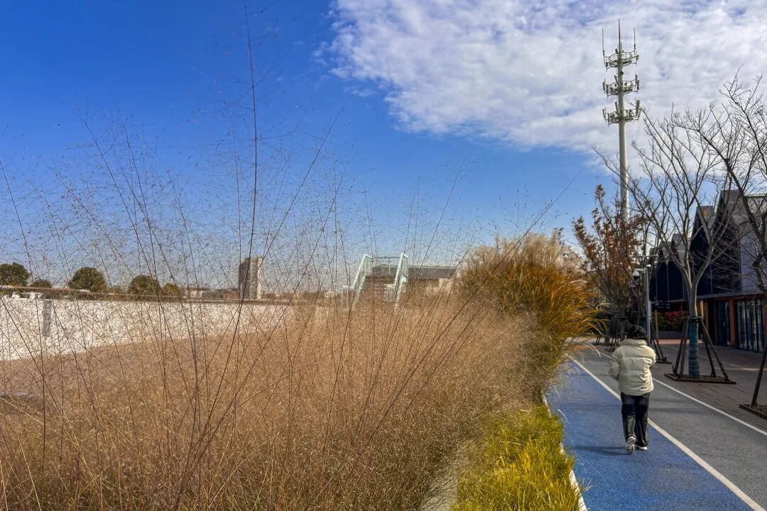 举起手机或相机,将墨西哥鼠尾草的紫、梧桐叶的黄、蕰藻浜水的蓝一同收进取景框,你就是这片秋日胜景的创作者。