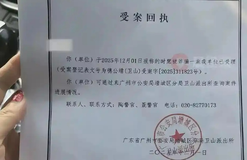 时女士称,正常来说消费者是接触不到“拦截快递”的,不清楚这位买家是否与快递员或驿站有勾结。她表示,因为仓库一般不会检查被拦截的快递,所以一直没有发现,直到近期,这位买家没有将面单贴好,露出破绽,她们才发现问题。时女士展示的受案回执显示,其于12月1日报案,目前该诈骗案已由广州市公安局增城区分局卫山派出所受理。