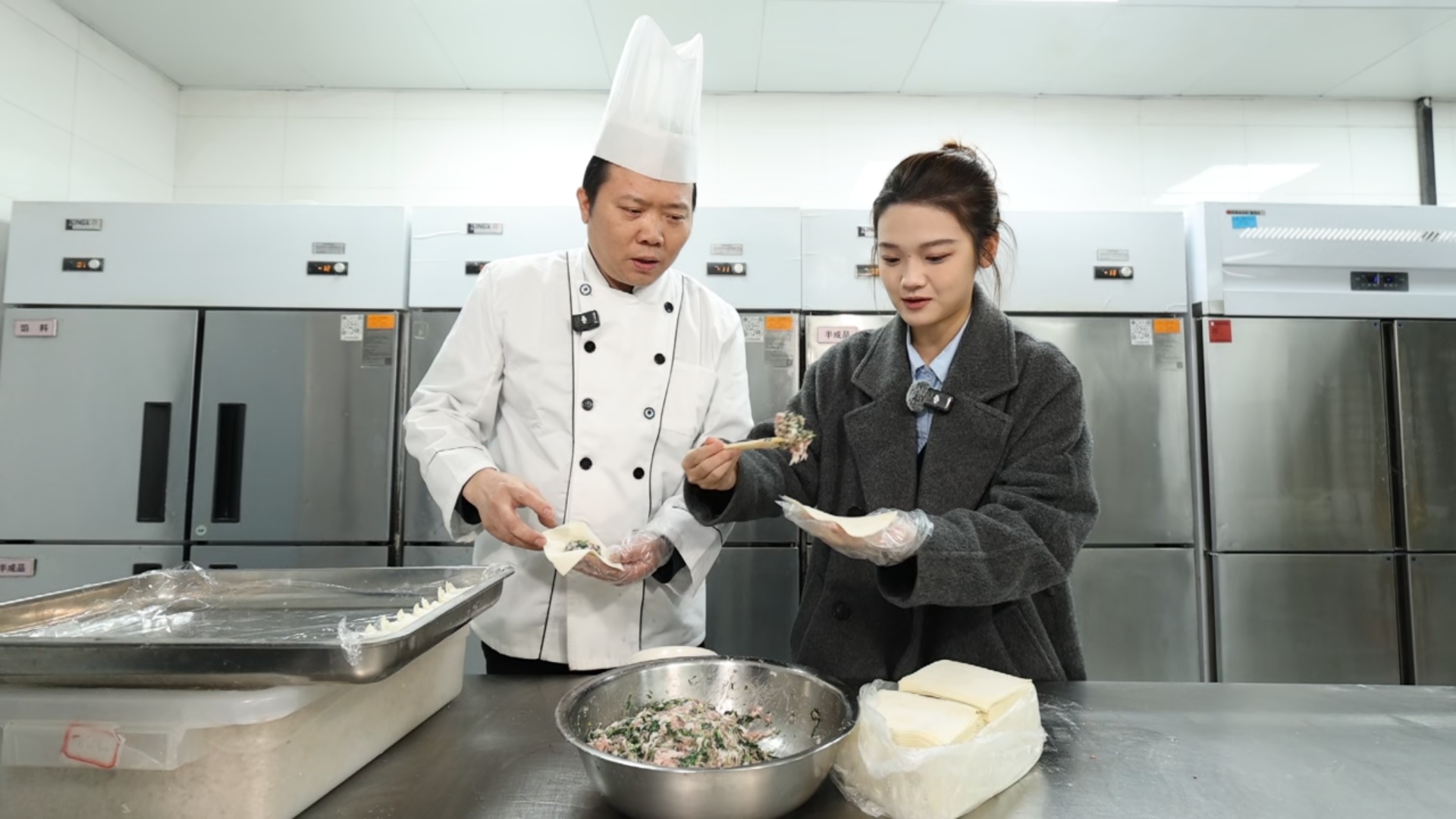 社区的暖心守护,也藏在一碗热腾腾的馄饨里。午餐时间,在方松餐饮兰桥社区食堂内,老人们结伴用餐。孙如心来到食堂后厨,上手体验包馄饨。“食堂的菜肉馄饨很受本地老人欢迎。”方松餐饮副总经理闵华介绍,食堂的馄饨荠菜肉和青菜肉两种口味,选用新鲜的荠菜和青菜与弹润鲜肉相融,味道老灵了。“这里的馄饨和家里的一个味道,我还会搭配一些小菜,吃得健康舒适。”戎阿婆说。