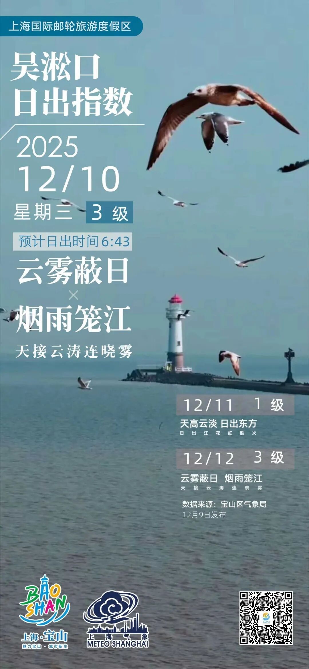 【吴淞口日出指数】12月10日3级 云雾蔽日×烟雨笼江