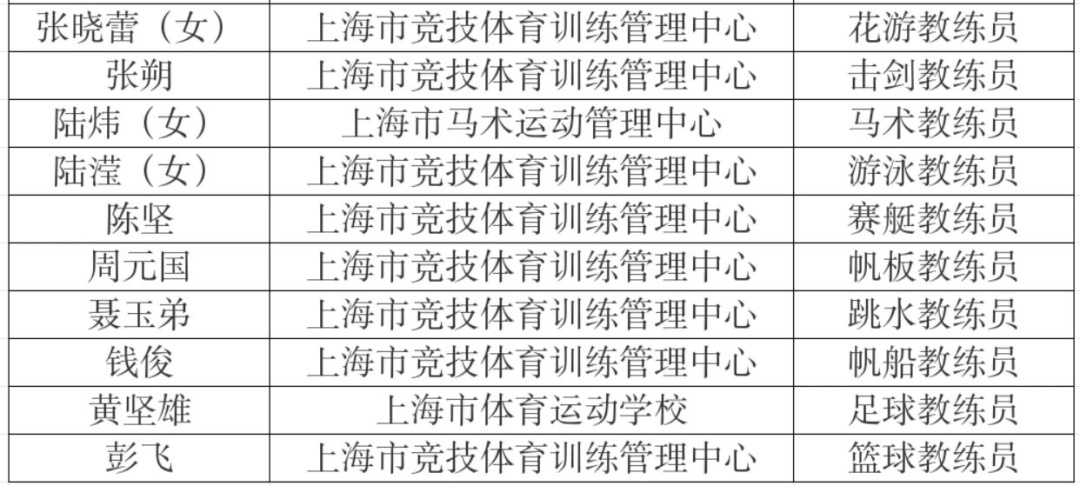 公示称,在第十五届全国运动会、第十四届全国冬季运动会上,上海体育健儿顽强拼搏、团结协作,出色完成参赛任务,为上海赢得了荣誉。