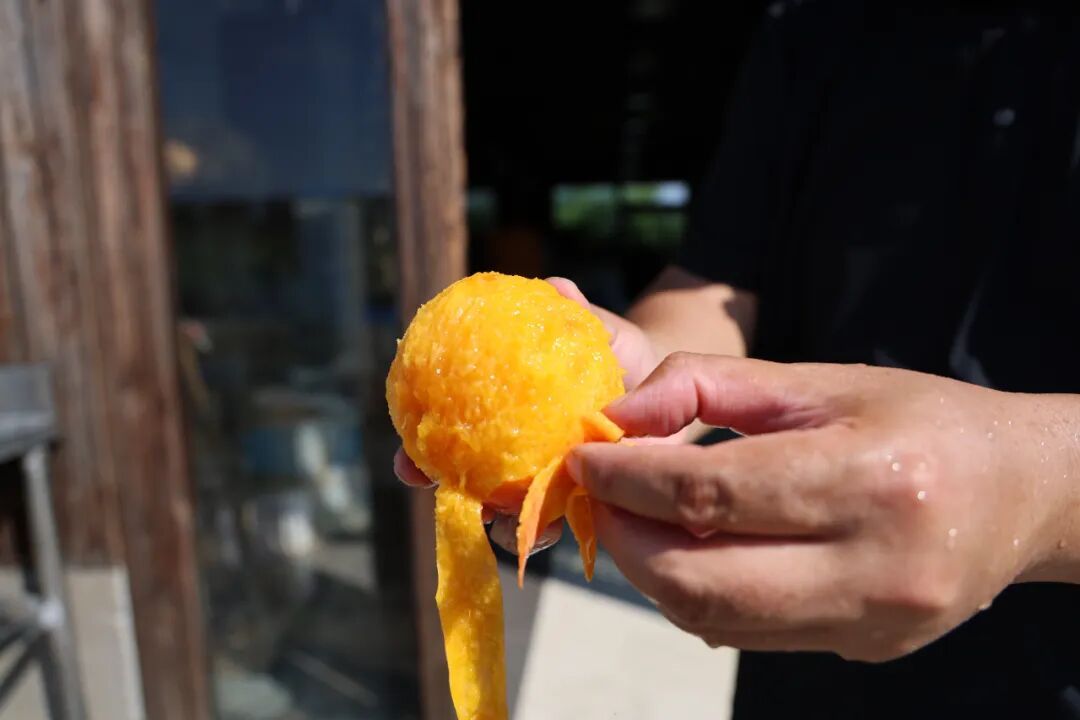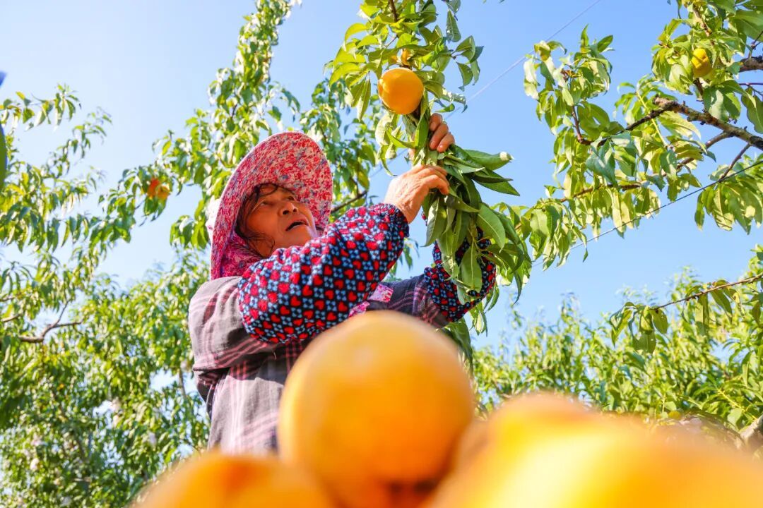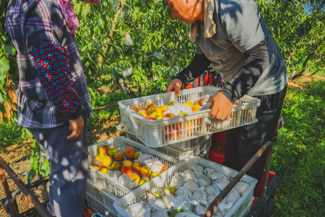 在桃园里,不仅能品尝新鲜的黄桃,还能体验亲手采摘的乐趣。摘下的黄桃可以现场清洗品尝,也能装进特制的礼盒带走,无论是自己享用还是馈赠亲友,都是满满的心意。