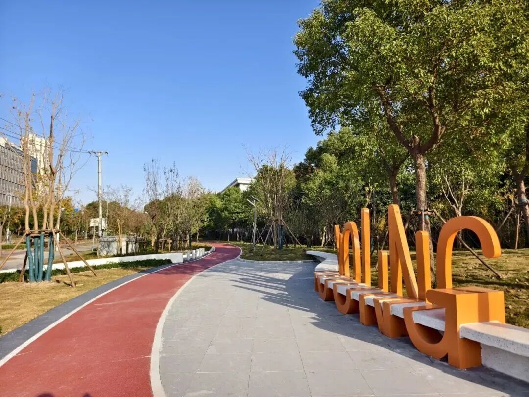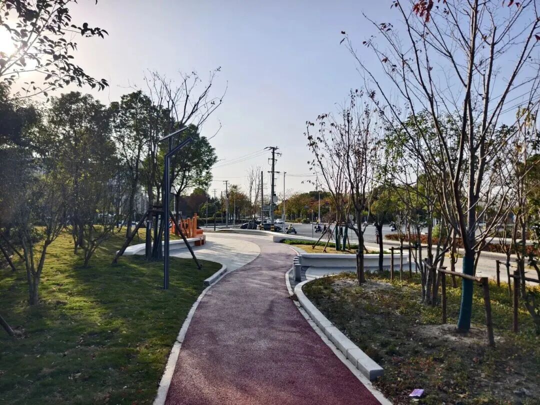 在这条生态步道位于杨泰路的一端,绿地中还开辟了一个小广场,不仅造型现代,还设置了长椅供路人休憩,爱好器乐的市民可坐在这里吹奏,为午后的生态步道平添了一份欢乐。