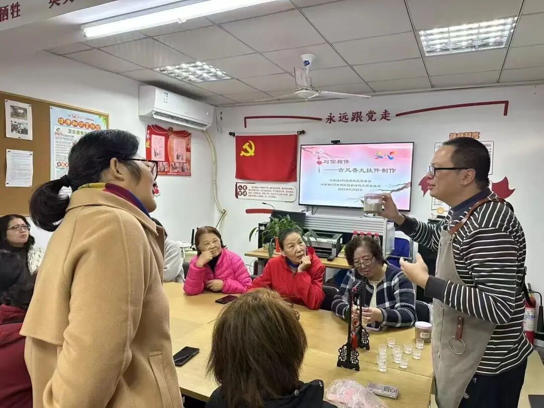 近日,临汾路街道各居民区深挖本土资源、创新服务形式,将工笔画团扇、古风香丸、螺钿杯垫等优质文化体验送到居民家门口,让“文化润邻”既有传统底蕴,又具生活温度,让居民在动手实践中触摸历史、感受美好。