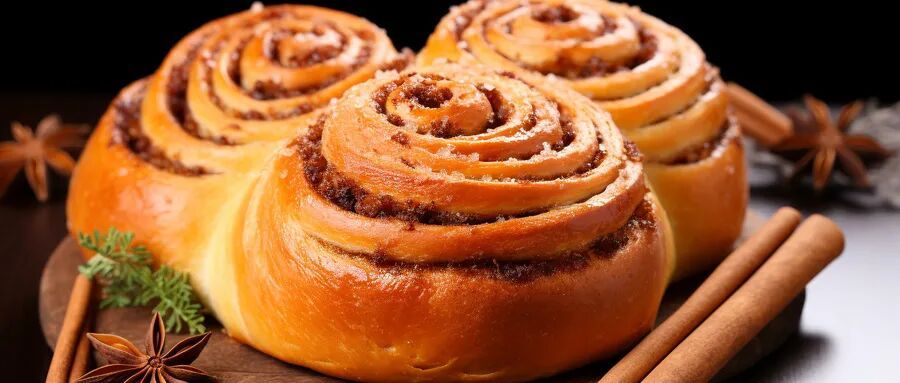③制作步骤:将面团食材混合,揉成薄膜状态的光滑面团;盖膜室温发酵至两倍大;擀成尽量长的长方形,同时撒粉防粘,翻面后压薄底部;均匀地刷上黄油,撒上红糖和肉桂粉;卷成长条形,按照自己的喜好厚度,均分几段;放入烤盘模具,调至35度发酵30分钟,发酵好后表面刷鸡蛋液;烤箱提前预热,调至200度烤15分钟即可。
