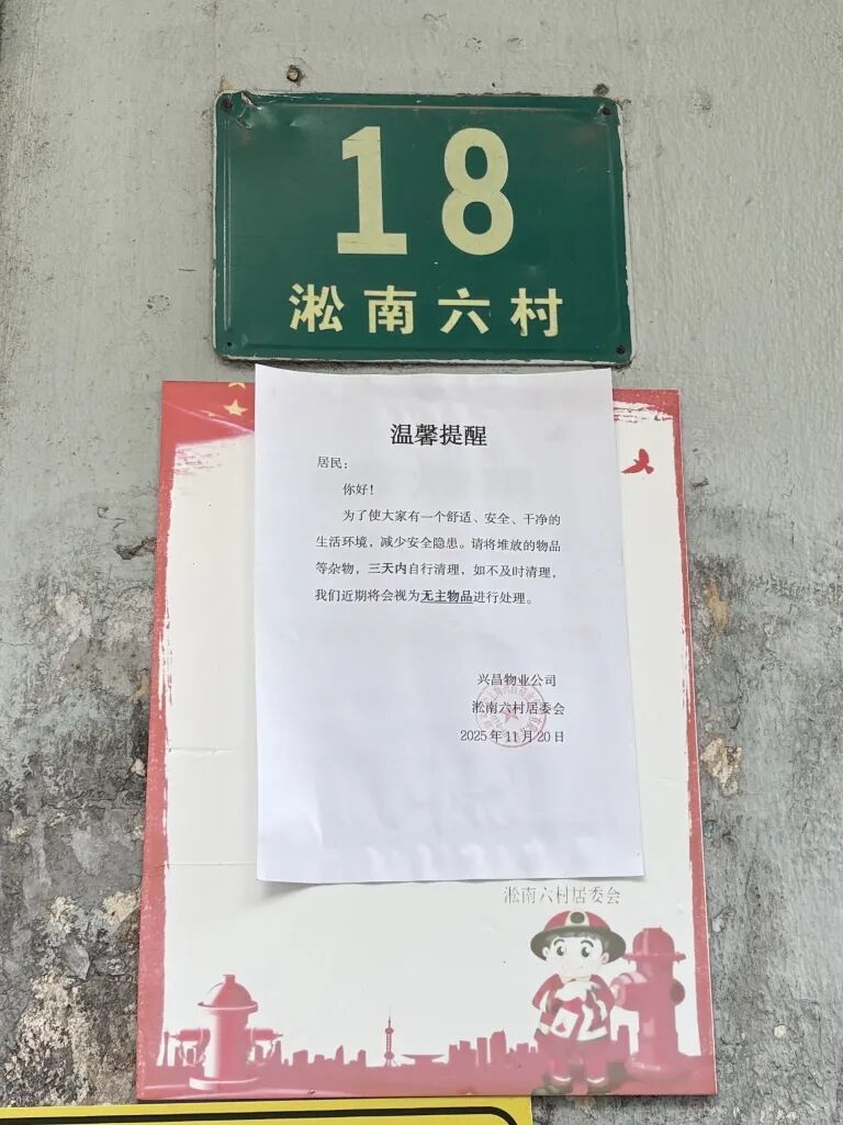 整治工作开展前,居委会与物业工作人员提前在小区内张贴通知,详细说明整治范围、内容与意义,引导居民主动配合清理,营造“人人参与、共建共享”的良好氛围。
