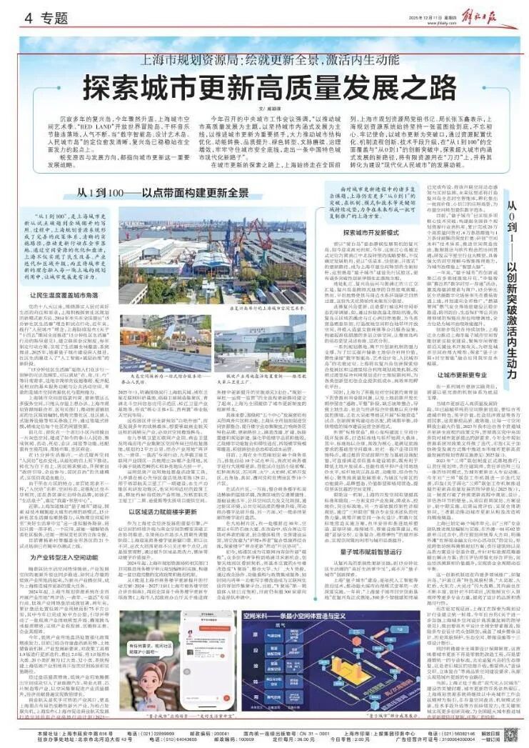 “从1到100”,是上海城市更新从试点破题到全域铺开的写照。过程中,上海规划资源系统形成了完善的政策体系,清晰的实施路径,推动更新行动在全市落地。通过空间资源的优化和盘活,上海不仅实现了民生改善、产业迭代和区域升级,而且将城市更新的理念融入每一块土地的规划利用中,让城市发展更有活力。