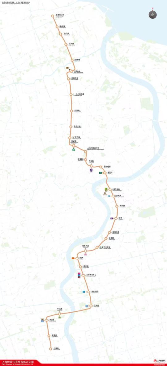 作为一条南北向的交通大动脉,19号线沿途串联起沿线闵行吴泾地区、徐汇南滨江、三林南、前滩、后滩、世博会地区、浦东南路沿线、陆家嘴CBD地区、以及北外滩核心区、四川北路商圈、凉城地区、吴淞创新城等重要地区,形成连接沿线的快速客运通道,弥补前滩—世博地区、陆家嘴、北外滩、虹口核心区南北向轨道交通线路的空白;衔接铁路宝山站,将提升枢纽轨道交通集散服务能力和可达性,促进沿线区域联动发展,通过与沿线相交多条轨道交通线路的换乘功能,进一步完善网络功能。
