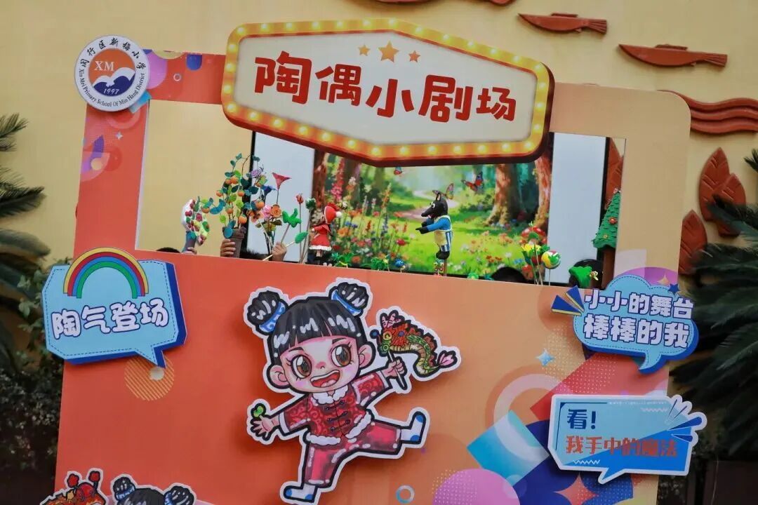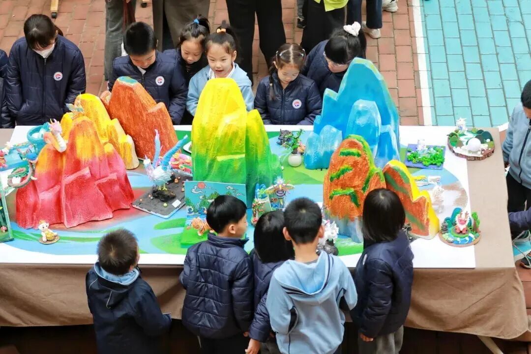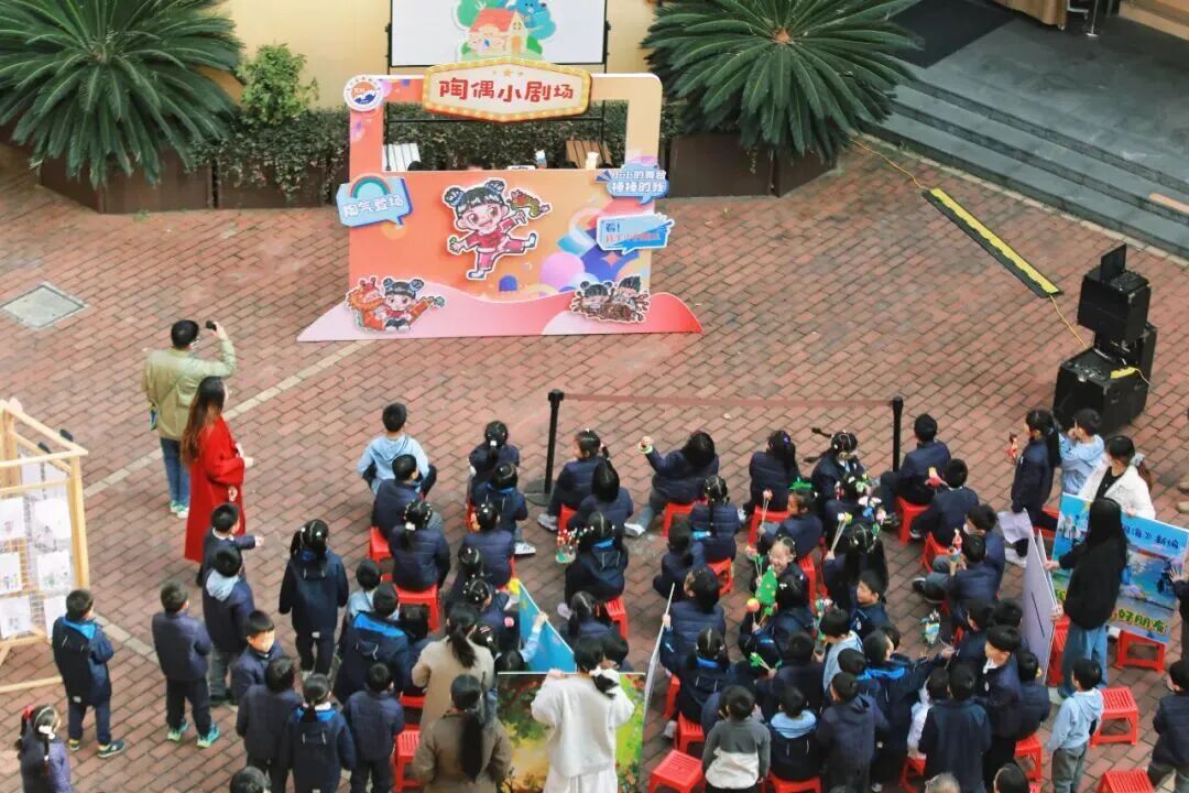 在“童话陶乐园”展区,一二年级的学生化身为故事创作者和剧场导演。他们不仅展示了亲手制作的各式陶偶,更在精心布置的“陶偶小剧场”里,为观众带来一场场精彩的现场演出。在前期的项目化学习中,他们浸润在童话世界中汲取养分,而后用憨态可掬的陶偶和稚嫩真诚的配音,让经典童话焕发出新的生命力。
