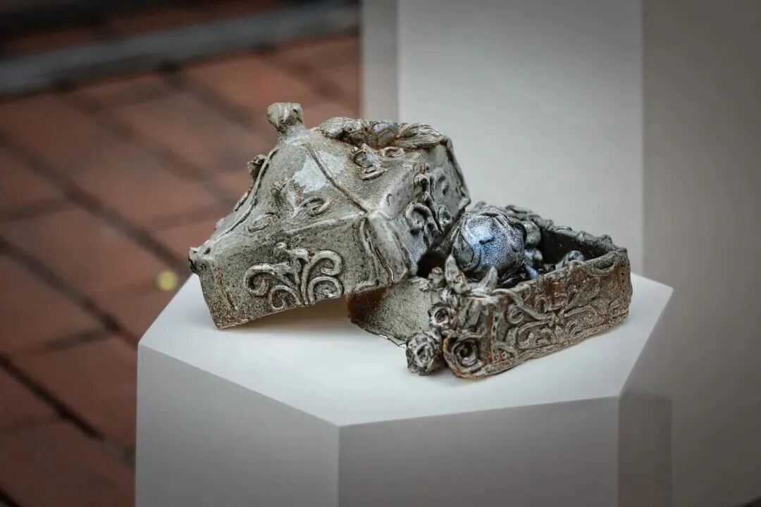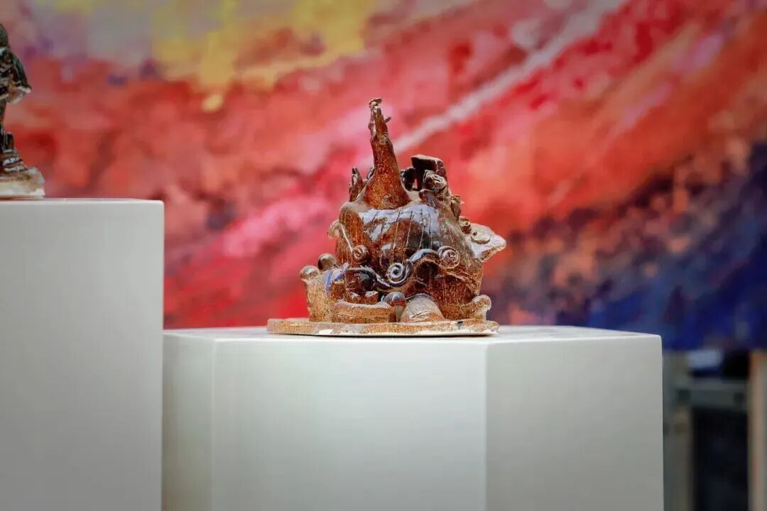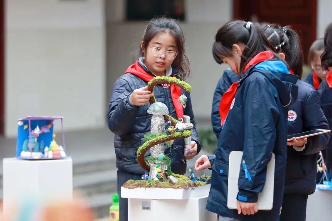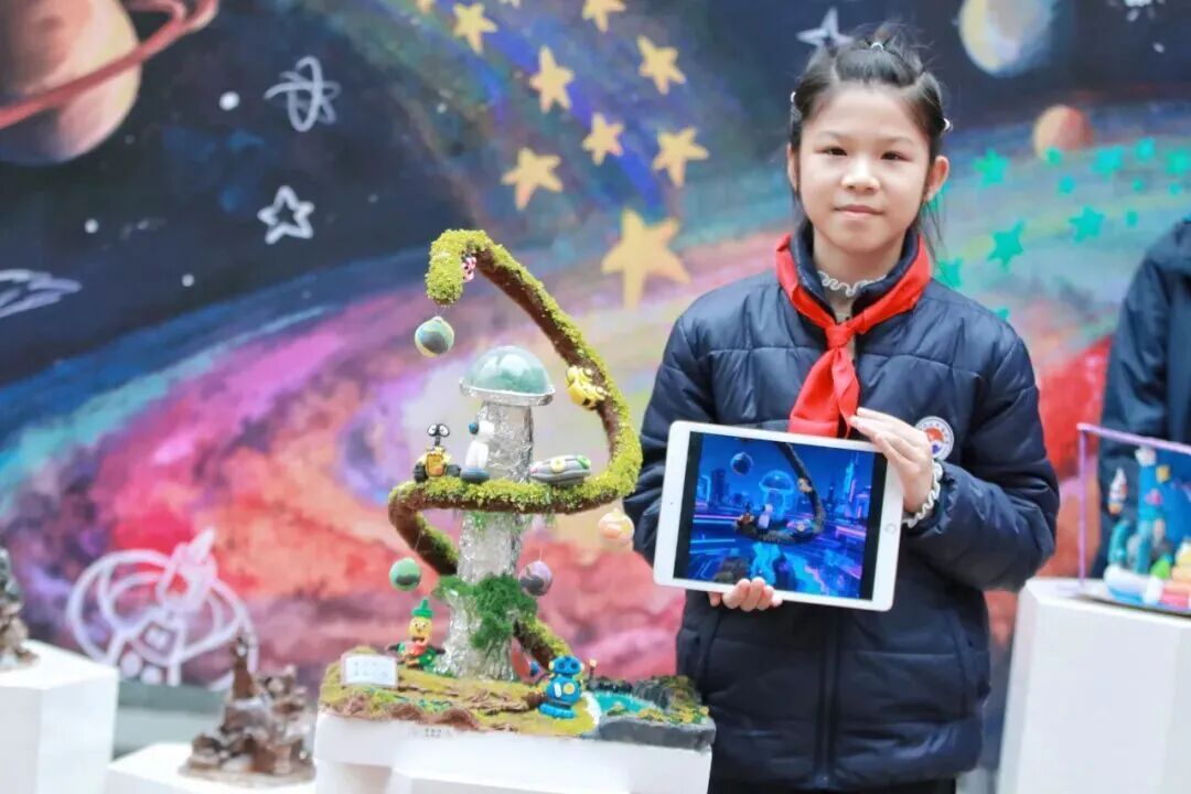 最引人注目的是五年级打造的“未来之城”展区。学生将阅读科幻书籍、与AI对话后迸发的灵感,凝结成一件件极具未来感的陶艺建筑模型。从悬浮的生态屋到星际交通枢纽,学生的奇思妙想与陶泥的古朴质感形成奇妙碰撞,展现了他们连接传统与未来的能力。