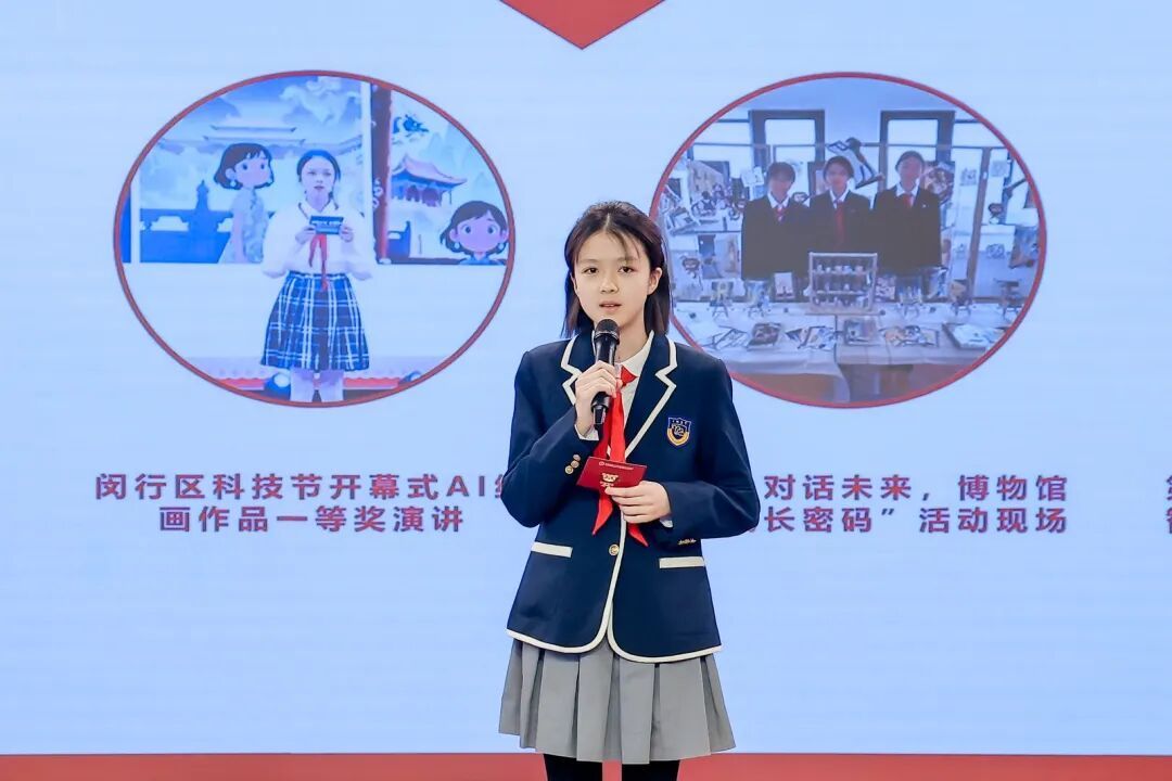 七年级的周君桦是“AI智慧社团”的一员,“我了解了AI的基本概念后,发现它并非遥不可及,AI文生图功能可以将我脑海中的构想转化为想要的图片,并不断调整和修改。”她还报名参加了长三角第五届人工智能奥林匹克挑战赛,荣获一等奖。