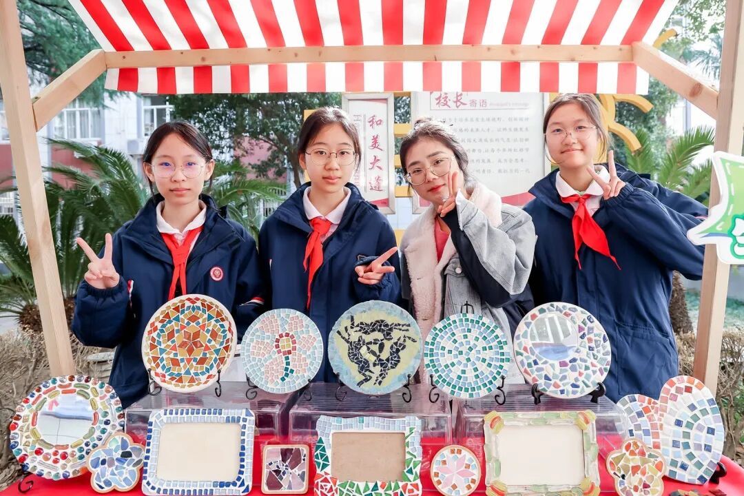 中午时分,走进华东师范大学附属闵行虹桥学校,学生纷纷为自己参加的社团或课程“带货”,“这是‘AI智绘’课程中,我们将参观上海博物馆时拍摄的照片,用AI工具生成个性化画作后,做成的冰箱贴。”“快来看看‘和风缀香’社团的作品,我们用扭扭棒和毛毡布做了这些好看又实用的香囊。”