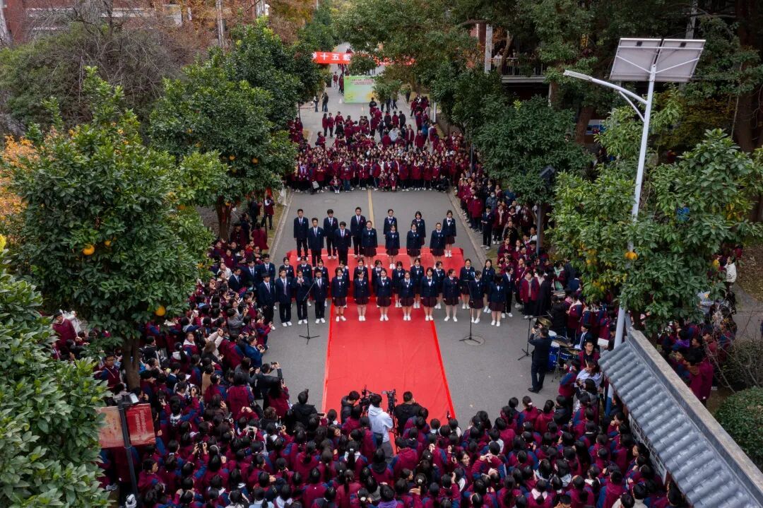 走进校园,小编就感受到了浓浓的“节日氛围”,放飞路上红毯铺就、台子搭起、柚子树枝头也系上了红色的丝带。“昨天晚上几位高三的男生来找我,跟我说,‘老郭,高三为什么不参加柚子节啊?’今天上午,他们在树上系上了象征好运的丝带,放飞理想。”松江一中党委书记郭宁伟笑呵呵地说,学生们都喜欢叫他老郭,也叫他“柚子爸爸”。