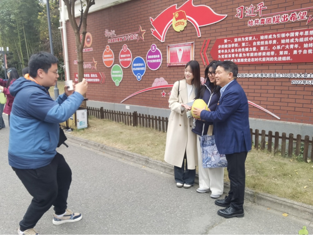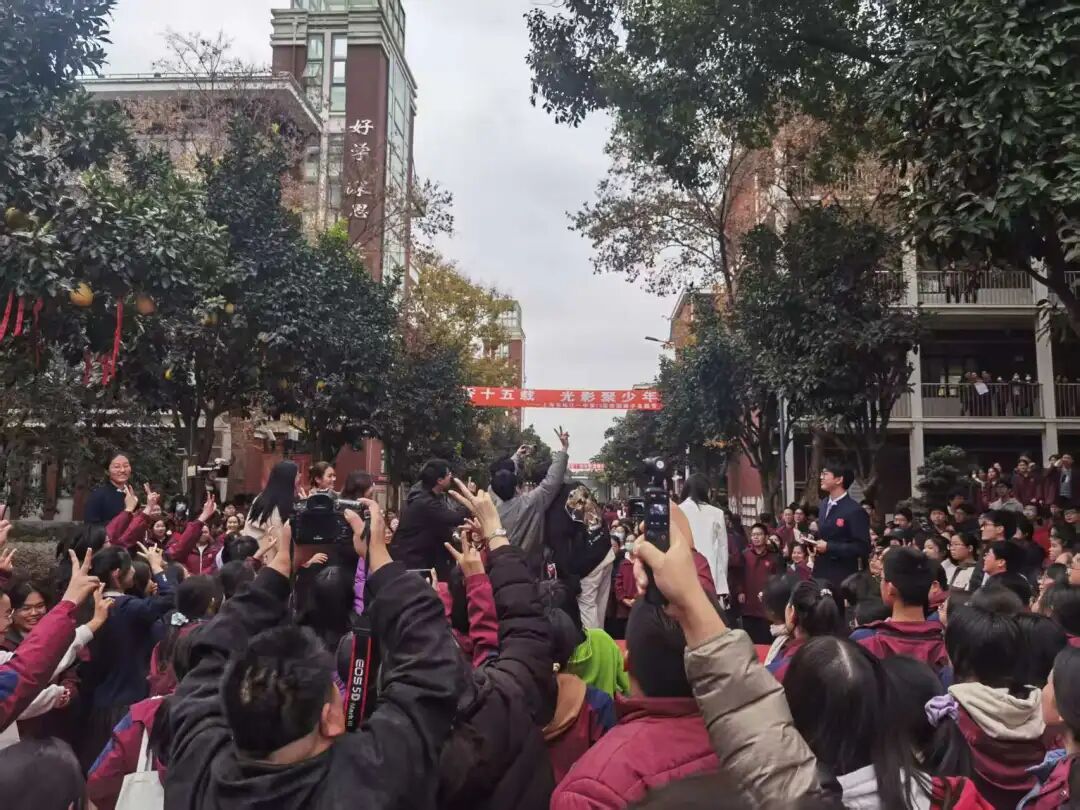 松江一中2017届毕业生谢琮麟说,“在学校读书的时候,我们也非常期待柚子节的到来。2015年我跟同学一起拍摄了校园微电影《我在柚子树下等你》,想不到10年后我们主创团队又在校园里相聚了。”