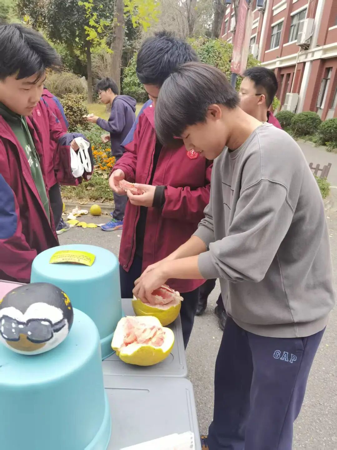 为了充分挖掘校内教育资源,引导学生关爱生命、珍惜万物,以喜悦之心、感恩之心、诗意之心、艺术之心去发现美、感受美,以“我在柚子树下等你”为主题的柚子采摘节系列活动在校园里精彩呈现,一场场关于柚子的“嘉年华”在松江一中的校园里火热进行。