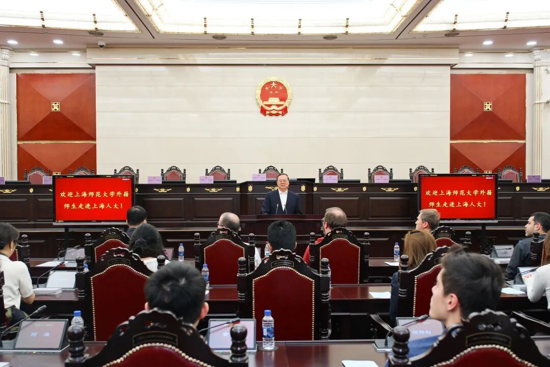 市人大外事委主任委员黄红主持活动,上海师范大学党委书记林在勇,副校长蒋明军,市人大监察司法委副主任委员、常委会信访办主任李明参加活动。 “我是外国人,如果我想在上海开公司,外资营商环境方面我比较关心。”“上海市人大代表男女比例是怎样的?如何保护和支持女性代表的话语权?”“上海市人大是怎样鼓励市民们参与进来的?外国人有机会提出建议吗?”交流环节,外籍师生们围绕上海人大工作、营商环境、创新创业、外籍人才政策、政务数字化、妇女权益保护、人民建议落实、城市治理、垃圾分类等话题踊跃提问。