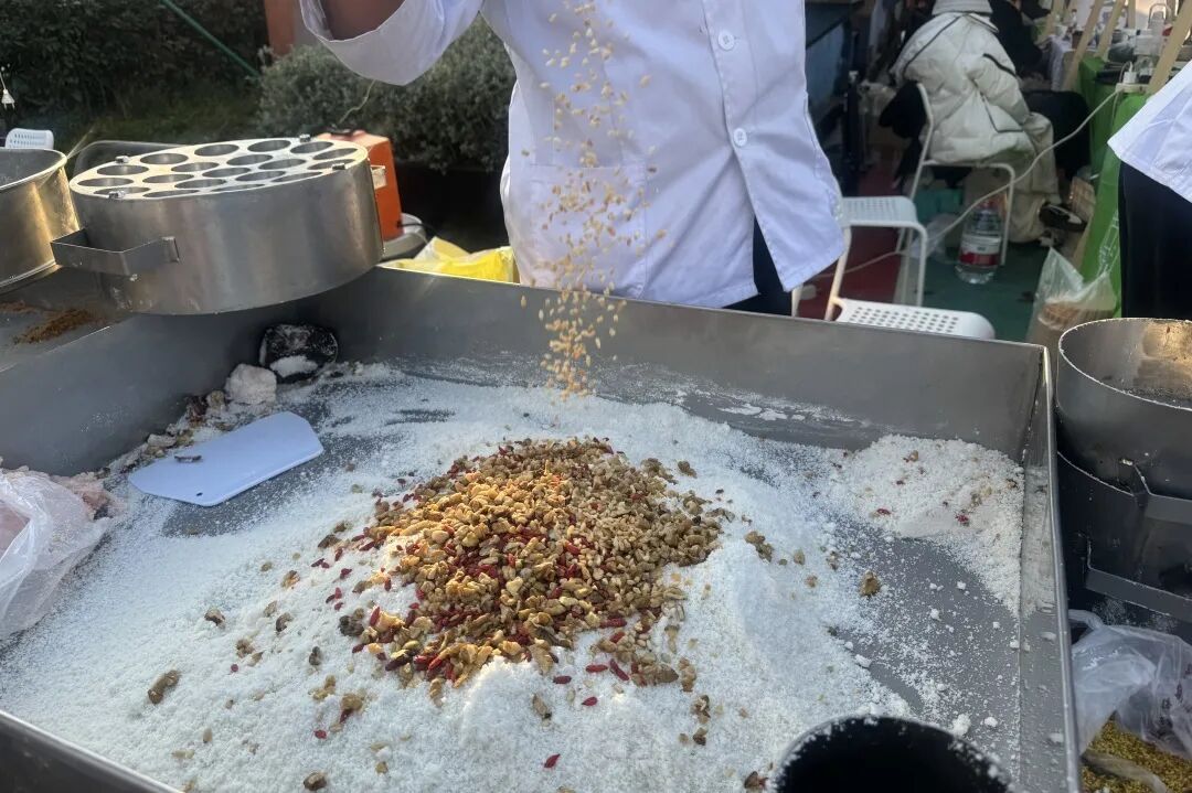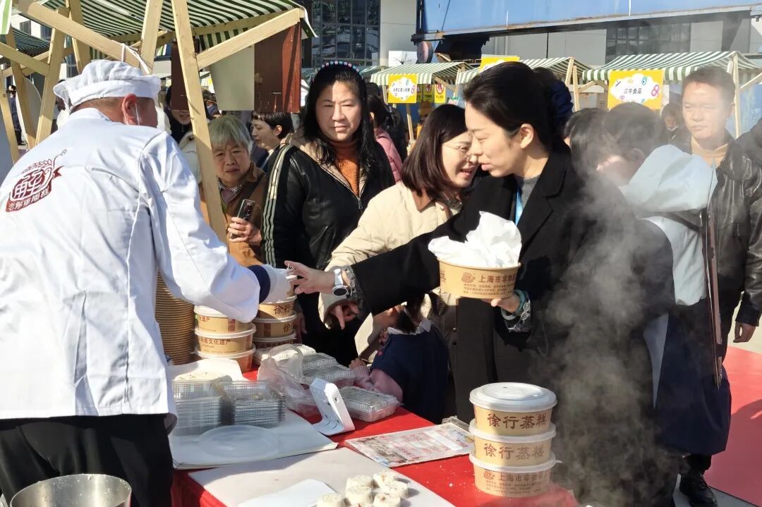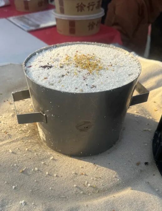 徐行蒸糕经过浸米、淘米、磨米、筛粉、搅粉、蒸糕等步骤制作而成,香甜可口在嘉定已有数百年的悠久历史。氤氲的米香在冬日中飘然升起,成为了整个市集最温暖的摊位。
