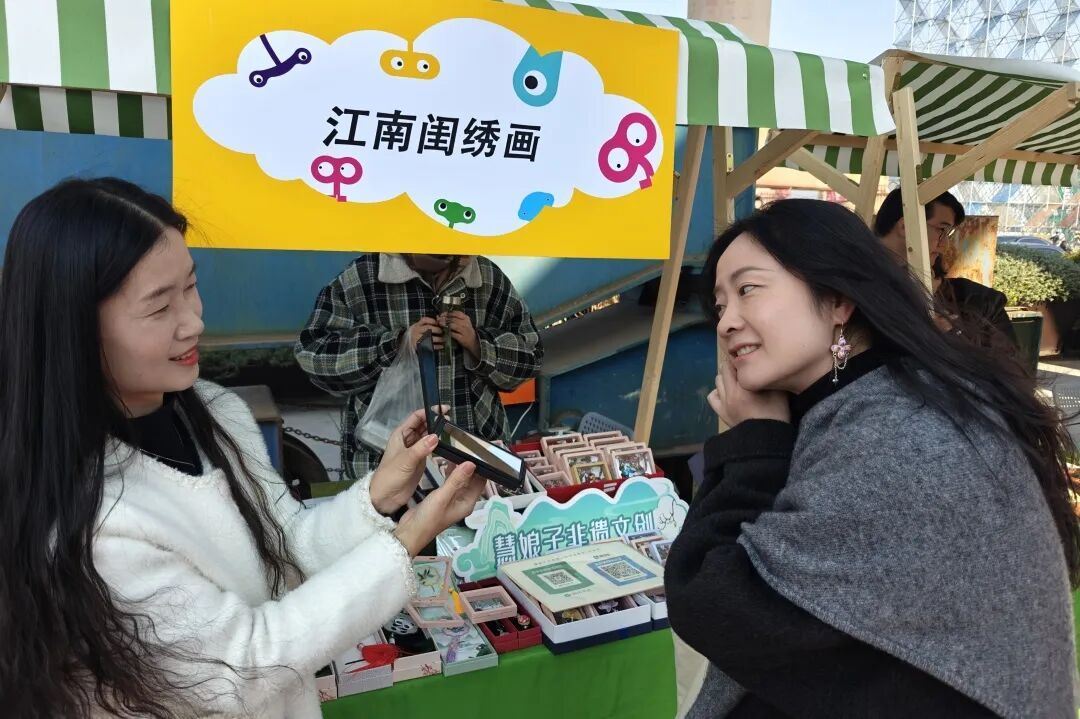 12月6日,2025上海城市空间艺术季“沪派江南-复兴市集”第五期嘉定专场在复兴岛火热开市。步入市集,一场文化盛宴正在上演,既有徐行草编、安亭药斑布、嘉定苏绣等非遗技艺的展示,也有醋大蒜、虾稻米等地理标志,又有融合传统元素与现代设计的文创,创新诠释嘉定江南文化的当代魅力。