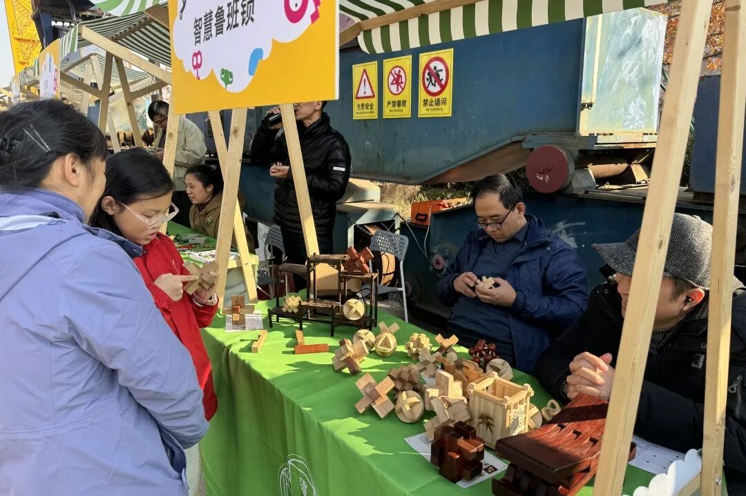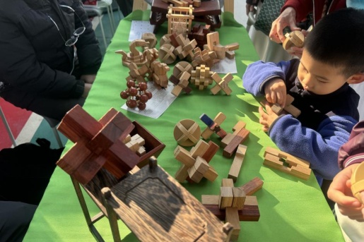 鲁班锁是一种传统益智玩具,鲁班锁制作工艺巧妙,玩法造型多变、难度各异,因而至今仍盛行不衰,赢得了在场不少小朋友的长时间驻足和尝试,成为整个市集含“童”量最高的摊位。