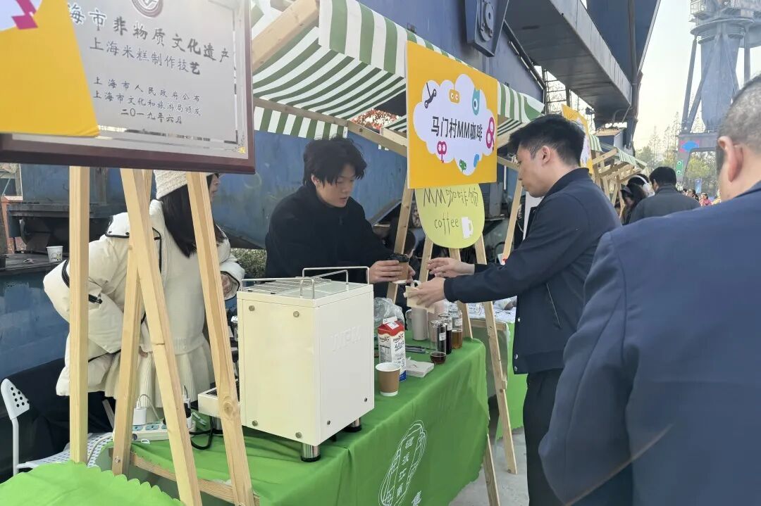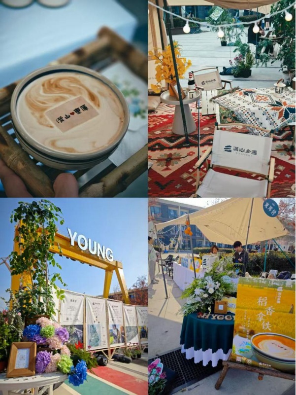 本次市集活动中,青浦区返场的「满山乡遇·东厍村」以帐篷露营主题打造沉浸式场景。开阔的田园露营区里,帐篷错落排布,市民游客或野餐小憩、或打卡拍照,尽享自然闲适;专属定制的 “稻香拿铁”,独具创意地将青浦特产薄稻米的浓郁米香与咖啡的醇厚完美融合。为露营体验增添了独特的乡村风味;秋收场景、品咖区等配套环节,让 “满山乡遇·东厍村” 的露营主题场景更具层次感,全方位诠释了乡村露营的诗意与美好。