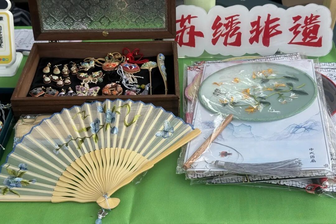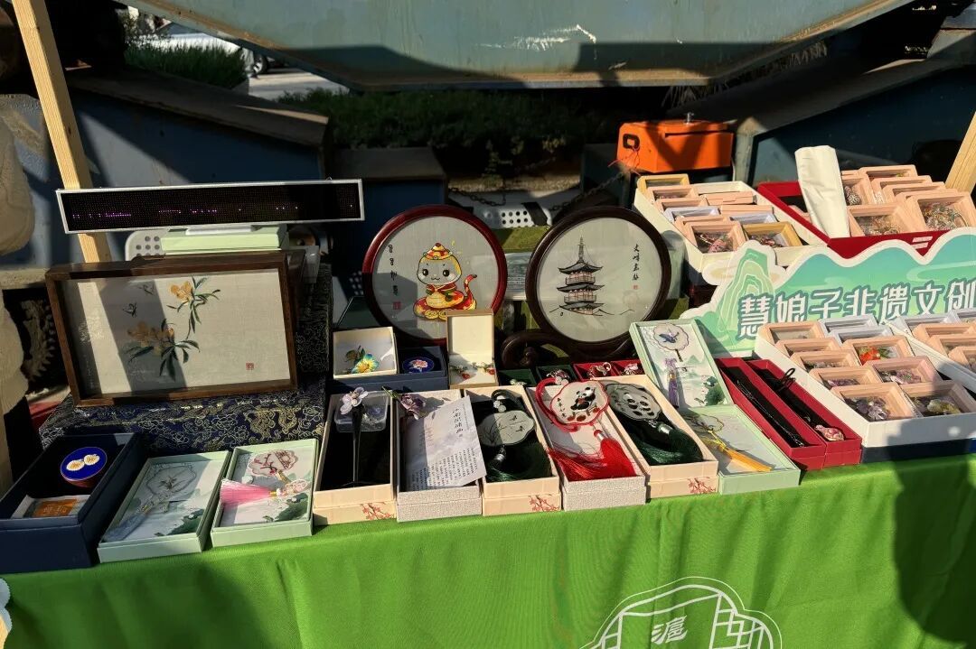江南闺绣画源起于北宋宫廷,是闺秀才媛以桑蚕丝线绣绘文人书画的传统美术形式,具有清逸高雅,较画更佳的艺术风格。市集展销了基于闺绣画开发的“慧娘子”品牌的多类文创产品。
