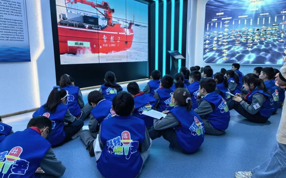 从船体设计的流体力学原理,到极地科考船抵御严寒的特殊技术;从测量船精准导航的核心系统,到航道规划背后的科学逻辑,工程师老师结合基地内的实物模型、模拟设备和图文展板,进行了生动细致的讲解。