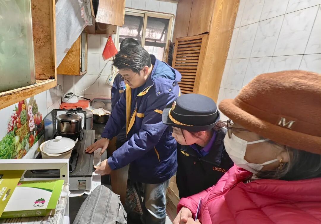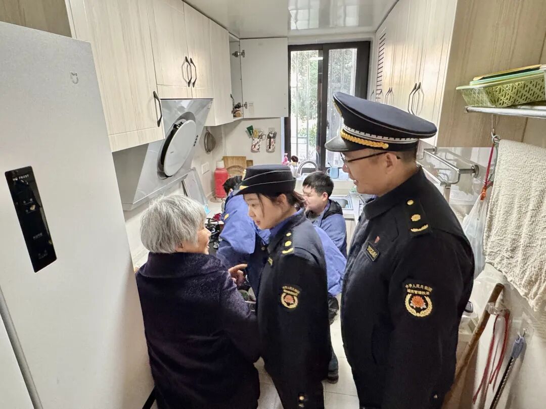 这场暖心服务并未止步于小区公共空间。考虑到社区内独居、高龄老人行动不便,燃气安全隐患排查能力较弱,一支由党员和志愿者组成的“上门服务小分队”出发,开展入户安全检查。执法队员们逐一走访独居、高龄老人家庭,仔细查看燃气管道接口、阀门状态、灶具使用情况,对发现的老化胶管、松动接口等问题及时处理,当场为有需要的老人更换了新的燃气软管。