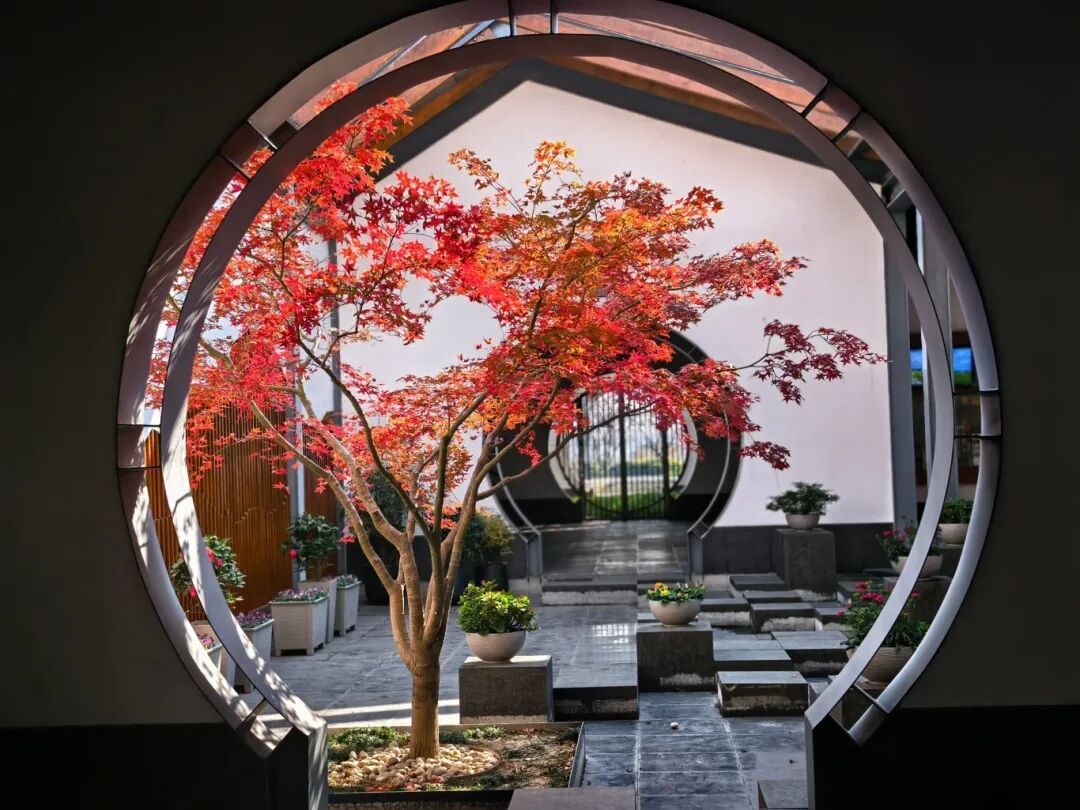 成排的鸡爪槭褪去盛夏浓绿