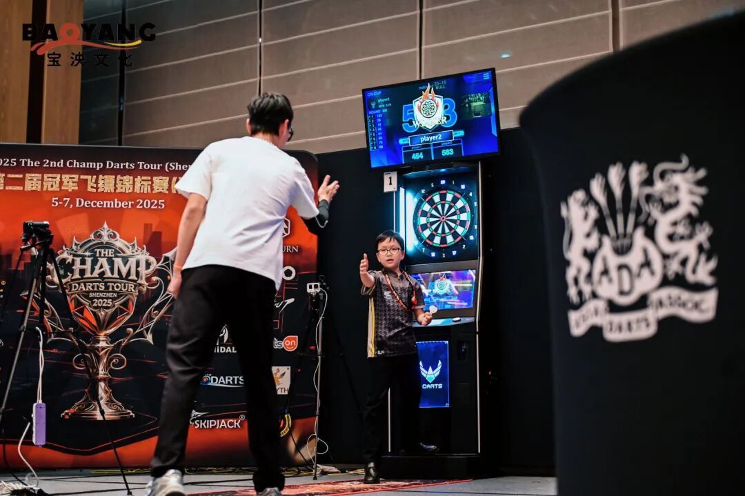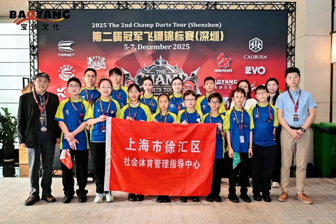 2025年第二届冠军飞镖锦标赛(深圳)日前在广东省深圳市举行。本次比赛吸引了多地高水平运动员同台竞技,上演了一场精准与速度的对决。 徐汇区青少年飞镖队共派出13名选手出征,参加了包括镖协杯四人赛、队际赛,软式青少年U12、U15、U21,单人米老鼠DIV3及双人501在内的七个组别的角逐,最终获得了2金、1铜和2个并列第五名。 徐汇区青少年飞镖队合影 本次比赛获得的两枚金牌均由选手周新博包揽。这位来自高安路第一小学的小将,从体教融合选拔苗子起步,经过系统培养进入徐汇区青少年飞镖队,目前已入选ELITE 1准预备队员。今年6月,他曾在澳门举办的第19届ADA国际飞镖锦标赛上单日独夺两金,被誉为“亚洲飞镖小旋风”。在本次比赛中,周新博不仅稳稳拿下软式青少年U12组别冠军,更是在无年龄限制的单人米老鼠DIV3组别中惊艳全场。面对众多成年选手,他从小组循环赛到淘汰赛始终稳扎稳打,精准把控比赛节奏,凭借超强的心理素质一路过关斩将。在决赛中,他与澳门成年选手展开激烈对垒,最终在最后一轮以超100分的优势锁定胜局。 周新博在单人米老鼠DIV3DIV3决赛现场 周新博的亮眼表现并非个例。此次出征深圳的徐汇小将们多点开花,在多个组别中均展现出较强的竞技实力与沉稳的赛场心态。同样来自高安路第一小学的蒋知含夺得了U12组别季军。 这些成绩的背后,是徐汇区长期深耕青少年飞镖项目体教融合模式的坚持,也是教练团队科学指导的付出,更是运动员们刻苦训练的汗水结晶。