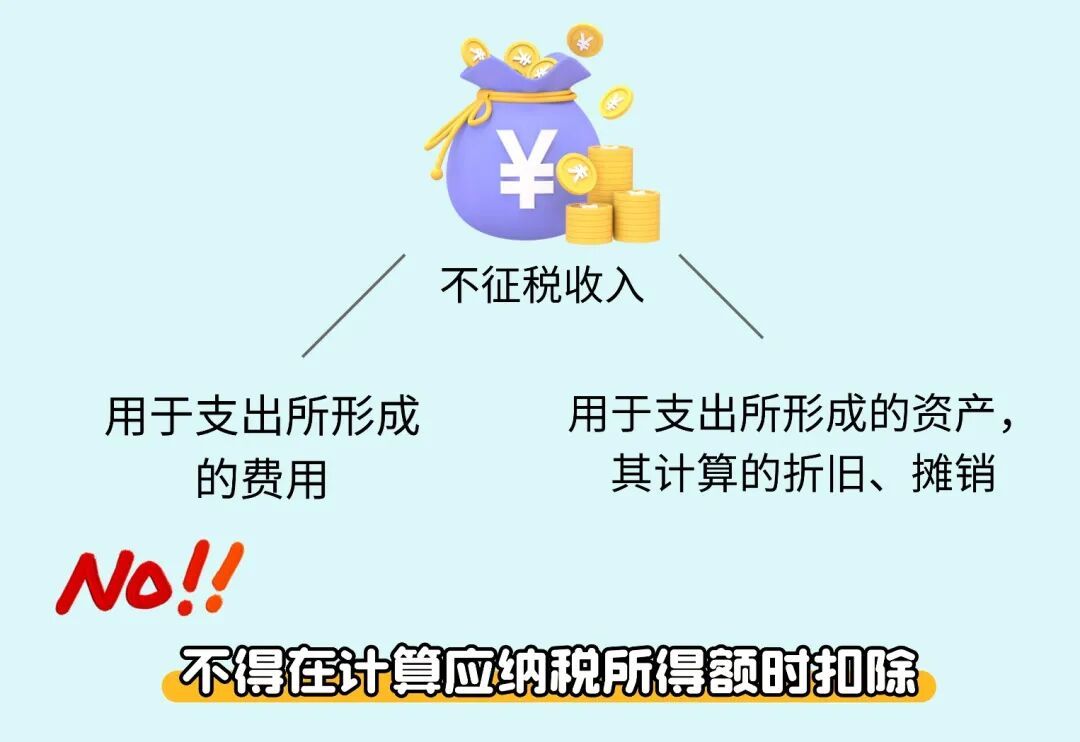 企业的不征税收入,用于支出所形成的费用,不得在计算应纳税所得额时扣除,用于支出所形成的资产,其计算的折旧、摊销不得在计算应纳税所得额时扣除。
