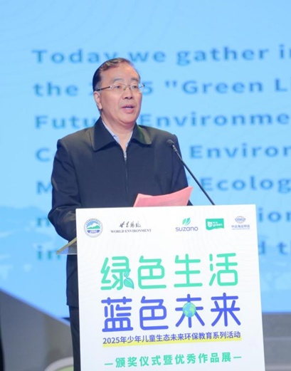 2025年12月13日,2025年“绿色生活 蓝色未来”少年儿童生态未来环保教育系列活动颁奖仪式暨优秀作品展在上海长宁区少年宫举办,生态环境部宣传教育中心主任闫世东出席活动并致辞。