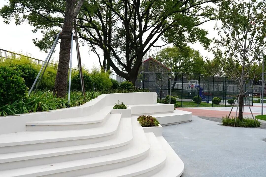 占地15990平方米的油酷艺术公园,由老厂区改造而来,秉持“保留、更新、融合”的理念,既保留了油罐、钢构架、阀门等工业遗存,又融合当代艺术设计。其前身为亚细亚火油公司仓库旧址,设计以保护现状特征、保障结构安全、低介入转化功能为策略,将仓库改造成文创建筑与艺术花圃,加油廊架改为艺术休闲廊架,挡墙改为艺术观演平台,融合工业遗存与科技景观。
