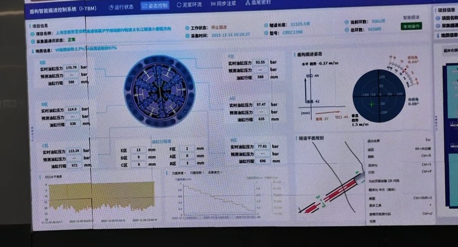 在长江水面之下70多米处,“领航号”盾构机正在稳步向前掘进,操控室内的智能化显示屏上显示,盾构机掘进已经突破5000环。截至目前,崇太长江隧道掘进突破10000米,还有1000米左右就将抵达太仓。