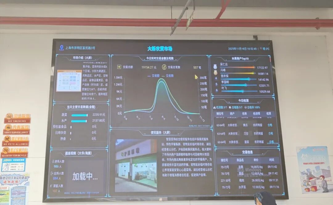 根据市商务委印发的《2025年上海市标准化菜市场升级改造工作方案》工作部署,崇明区经委紧紧围绕世界级生态岛建设目标,积极践行“生态+、智慧+、服务+”的发展理念,立足本区实际,通过走访调研、常态督导、绩效考核、联合验收等方式,系统推进市级标准化菜市场升级改造、区级生态市集建设。2025年度,崇明区完成新河镇边玛市集、竖新镇大新生态市集2家标准化菜市场升级改造项目。 一、新河镇边玛市集升级改造案例 1 市集概况:从“老菜场”到“新标杆”的蝶变 新河边玛市集位于上海市新河镇富盛生活广场一楼(地址:崇明区新开河路877号),单层建筑、面积3050㎡,布局动线清晰、业态多元便民。该菜场前身为1980年代始建的“新河老菜场”,因设施滞后、功能不足,由镇政府牵头、企业市场化运作,对标《上海市标准化菜市场设置与管理规范》及《崇明区生态市集建设与管理指南》进行全面升级改造。 核心理念以“生态、智慧、便民、特色”为导向,菜场名称“边玛”既体现新河“鱼米之乡”物产特色,也承载本土人文底蕴,致力于打造乡村“垂直生活圈”。2025年6月,正式通过崇明区三星级生态市集以及上海市标准化菜市场升级改造项目验收。 2 建设经验:锚定“生态+智慧”双核心 生态化升级,舒适与便民双提升 一是硬件优化。在菜市场改造过程中,采用防滑地砖、易清洗台面、节能灯具及水循环空调,搭配可调遮阳棚,优化采光通风,并配置雨水收集二次循环利用,实现生态赋能;二是便民配套。增设无障碍通道、租赁轮椅设施,设置服务台、休息区、非机动车停车场,提高菜市场内外绿化覆盖率,打造便民友好空间;三是特色设计。充分结合新河本土文化特色,在菜市场西侧设文化长廊,融入民俗元素,展示崇明土布、瀛洲琵琶等本土特色。同时,划分自产自销摊位区域,拓展本地农产品展销渠道,兼顾实用与文化属性。 2.智慧化赋能,数据与效率双驱动 一是信息透明。入口智慧大屏实时展示菜价、平价菜、热销商户、交易占比等;服务台设置触摸屏,可时时查询、检测报告以及商户等信息。同时,依托智慧系统采集的客流、交易、商品数据,优化招商与促销策略,数字赋能打造公平、竞争、有序的市场环境;二是交易升级。定期组织商户开展食品安全、智慧设备操作培训。全覆盖智慧电子秤,实现快速识别、多渠道支付,小票含溯源二维码。同时在智慧电子秤屏幕上开展禁烟、诚信经营等文明宣传,让交易成为多元载体实现多种功能。三是管理提效。智慧农贸系统实现商户信息、合同数字化管理,出入口客流统计设备为布局优化提供数据支撑,全覆盖监控系统实现远程巡检,及时处理异常,保障运营秩序。同时引入专业的第三方团队进行菜市场管理工作,软硬件双提升管理质效。