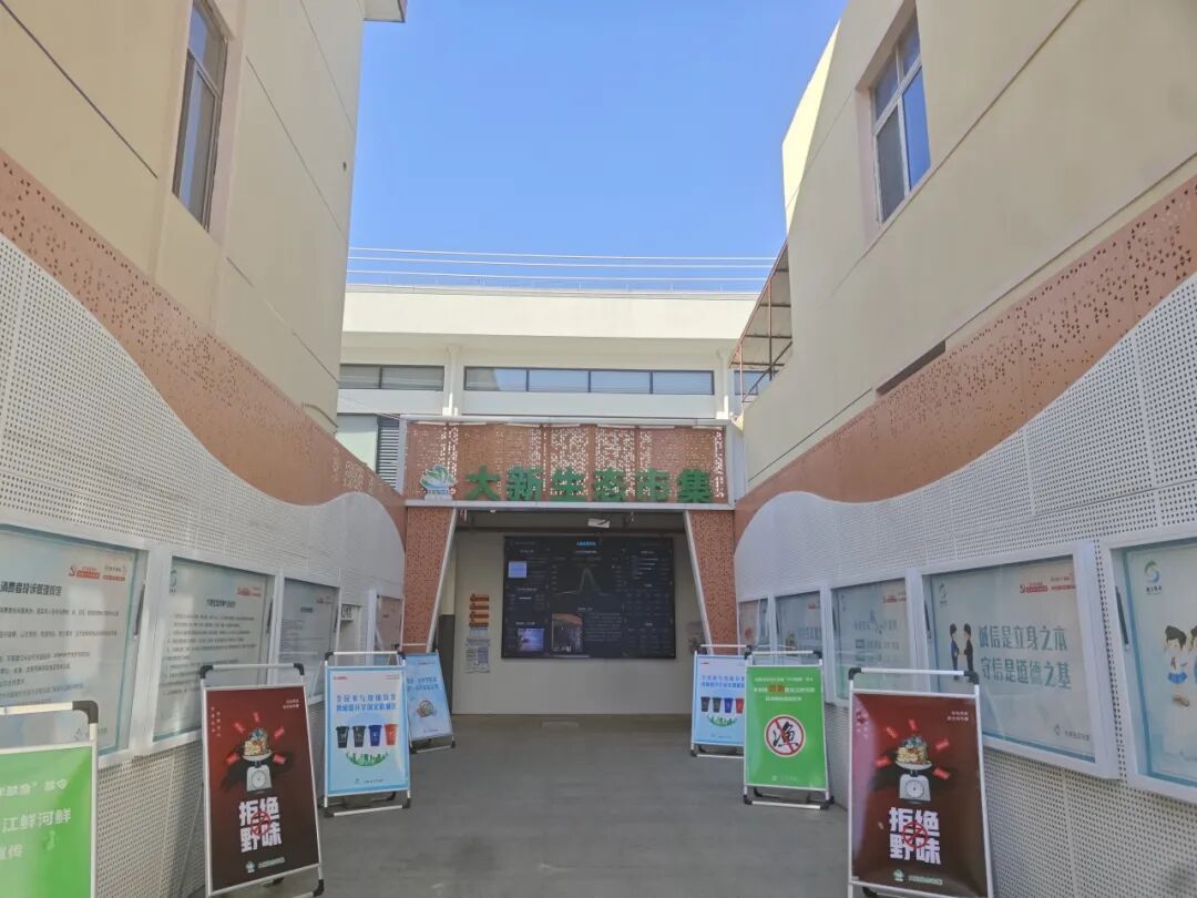 大新生态市集位于上海市崇明区竖新镇响椿公路社区南侧约40米,于2024年7月完成全面升级后正式营业。其经营场地布局精巧,致力于打造一个融合生态美感与生活便利的社区公共空间。该市集前身为服务社区多年的老旧菜场,因设施陈旧、功能单一,由竖新镇政府牵头,对照《上海市标准化菜市场设置与管理规范》及《崇明区生态市集建设与管理指南》实施全面改造。项目主要建设内容包括屋顶防水、摊位改造、公厕升级、给排水、强弱电、消防及广告招牌等配套工程,全面提升市场硬件水平与环境品质。